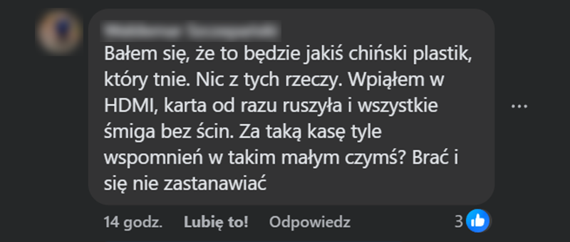 Instalacja jest banalnie prosta i zajmuje mniej niż minutę. Wpinasz do gniazda HDMI w telewizorze, podłączasz zasilanie pod USB i gotowe.