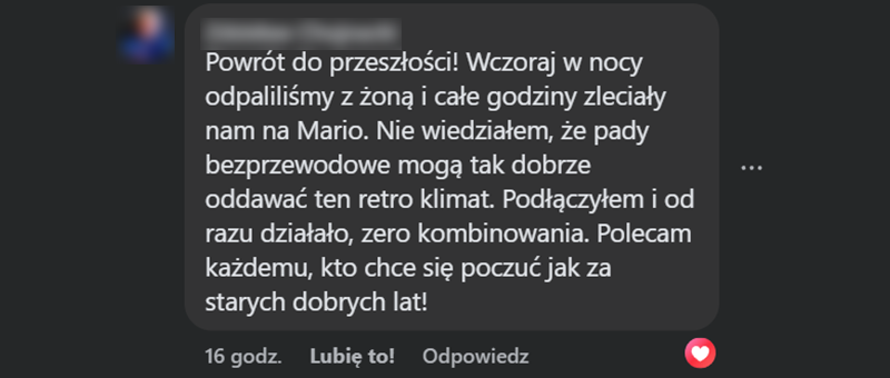 Idealnie wyważony i precyzyjny. Każdy skok w Mario i każde combo w Tekkenie wchodzi dokładnie tak, jak zapamiętały to Twoje palce. Zero lagów.